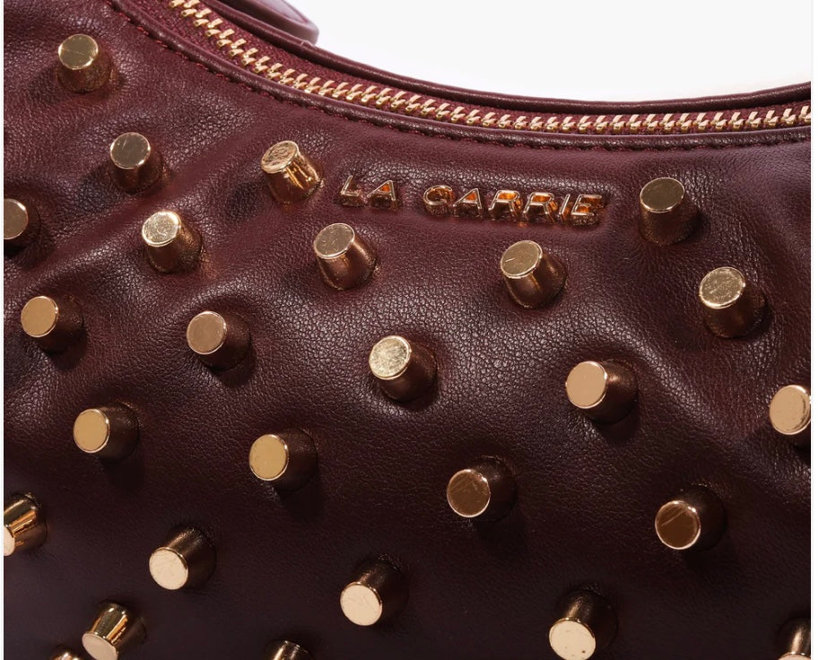 Piccola borsa hobo in ecopelle con borchie applicate, chiusura a zip e manico rimovibile